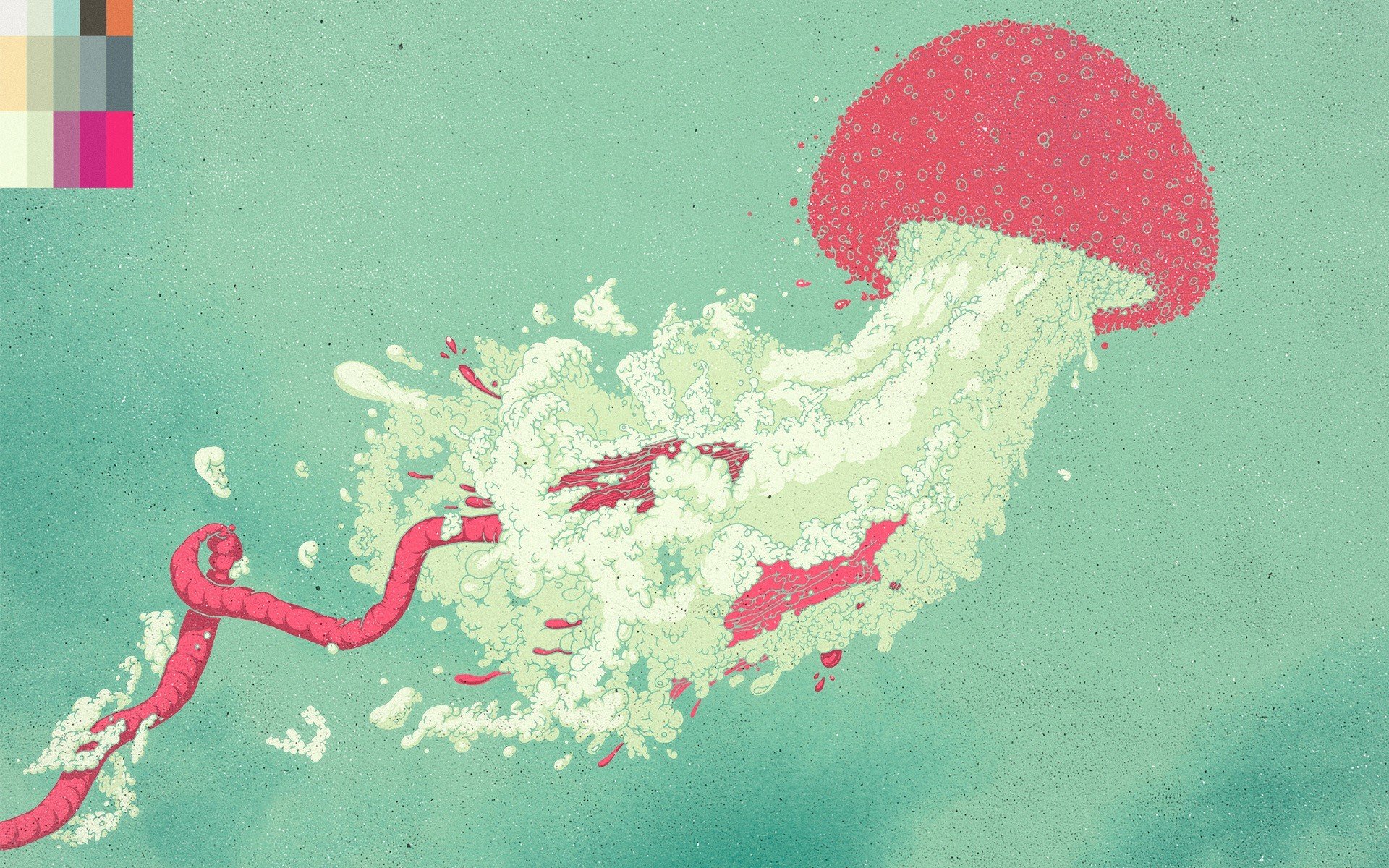 Medusa pintada en agua con burbujas