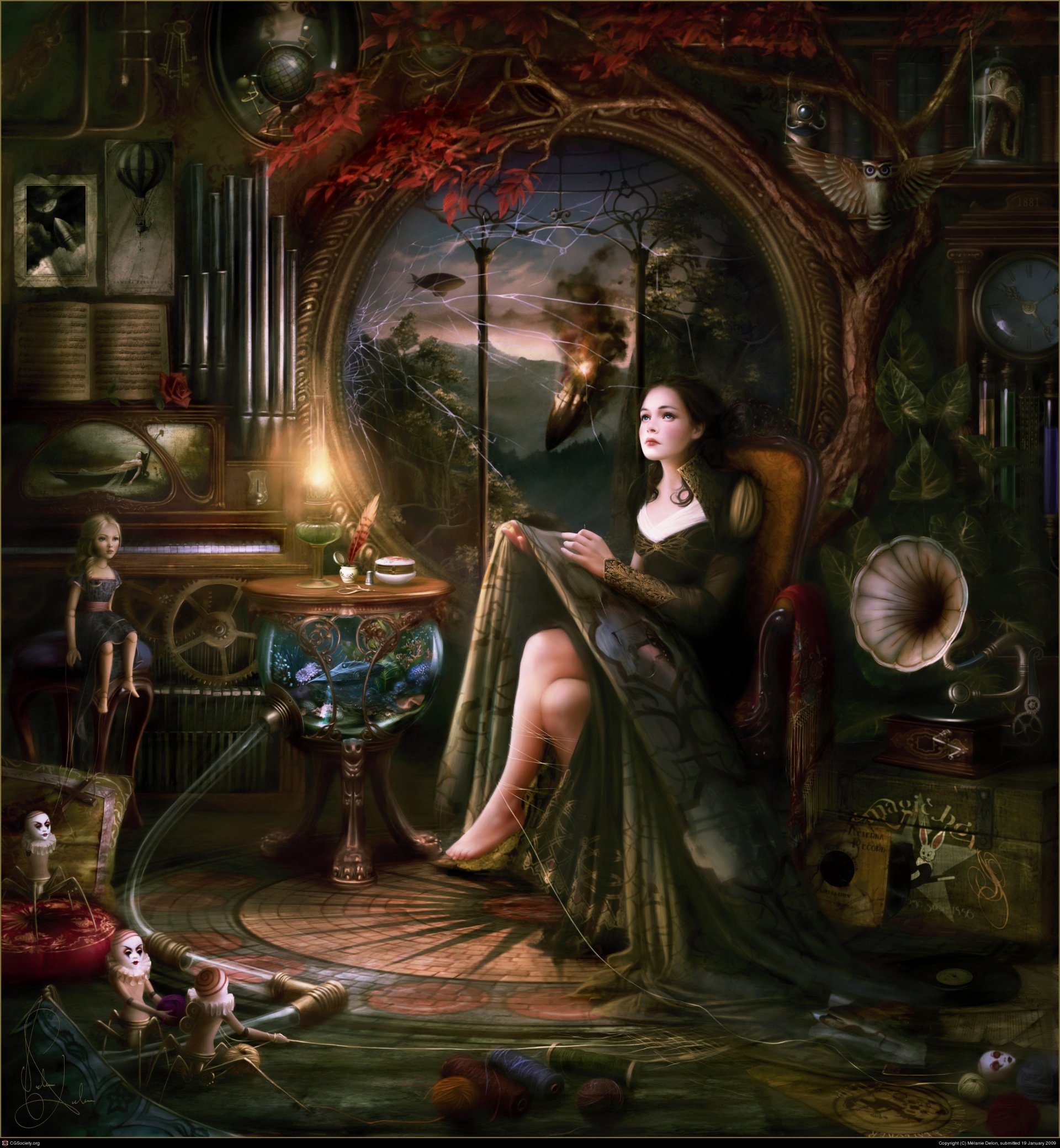 Hermosa chica joven en un vestido en una silla