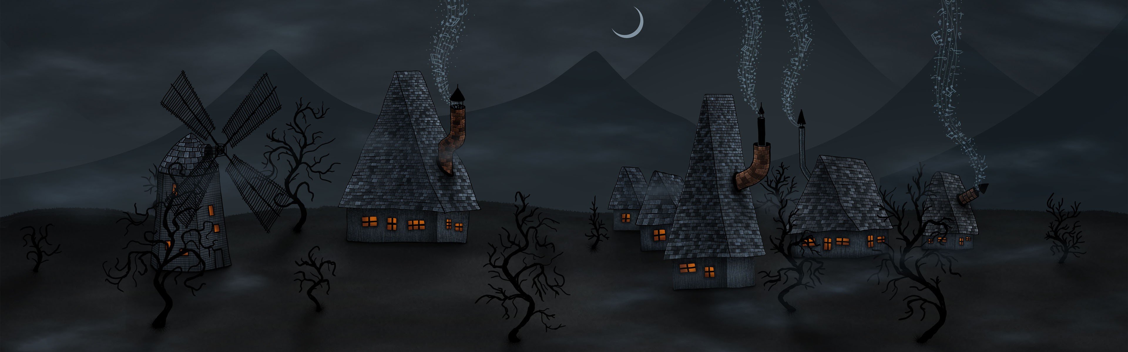 Dibujo de un gato negro en la noche en el fondo del mesDibujo de un gato negro en la noche en el fondo del mes