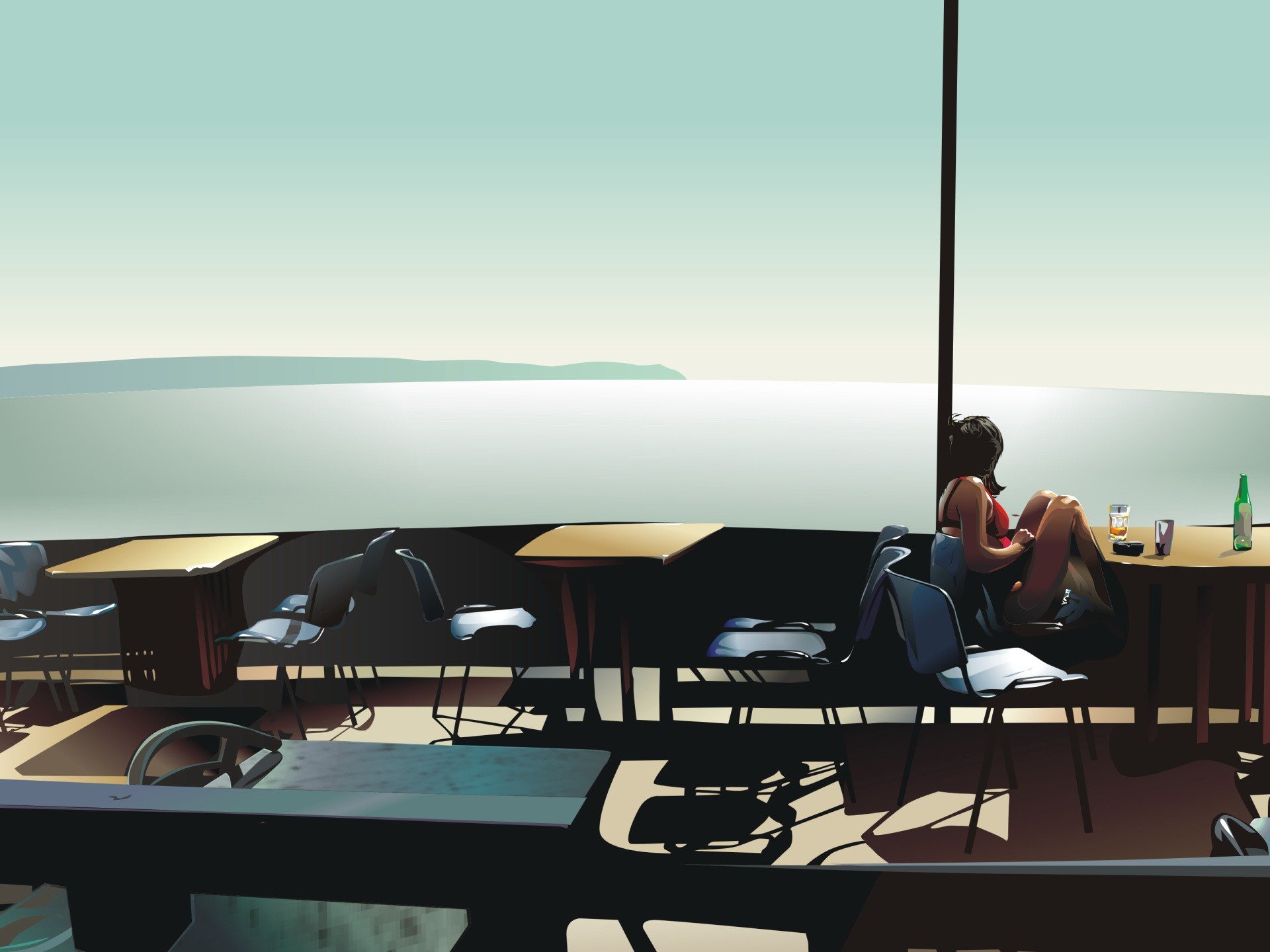 Cinco cisnes nadan juntos en el río hacia la orillaCinco cisnes nadan juntos en el río hacia la orilla