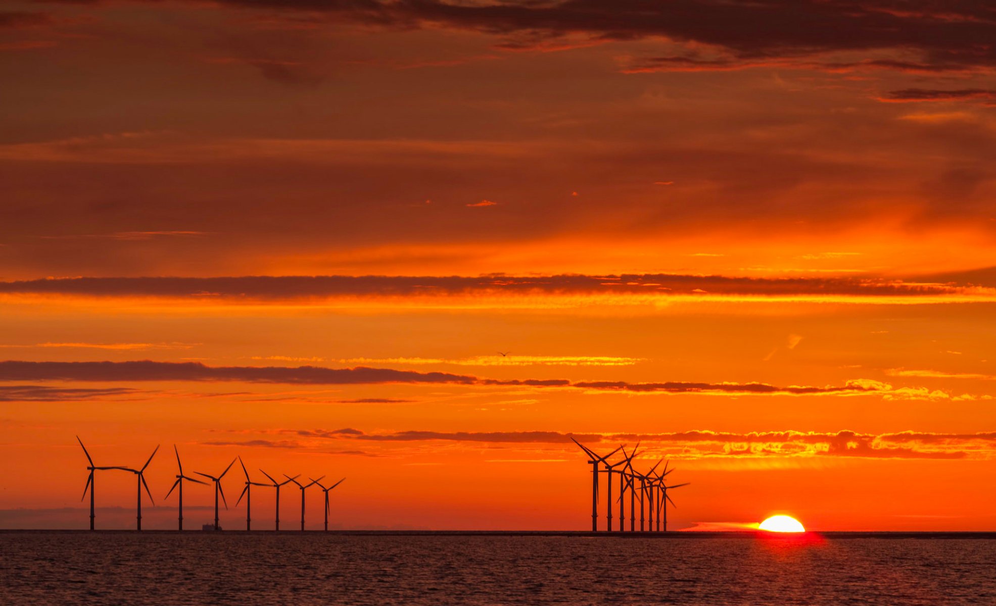 Molinos de viento y el sol que se pone detrás de ellosMolinos de viento y el sol que se pone detrás de ellos