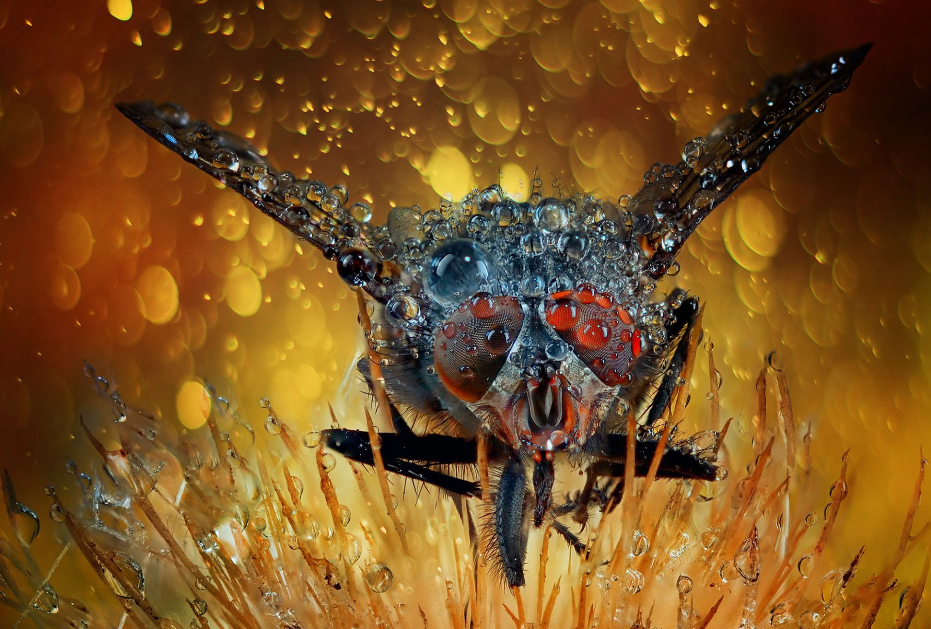 Fotografía macro de un insecto, una mosca en una piedraFotografía macro de un insecto, una mosca en una piedra