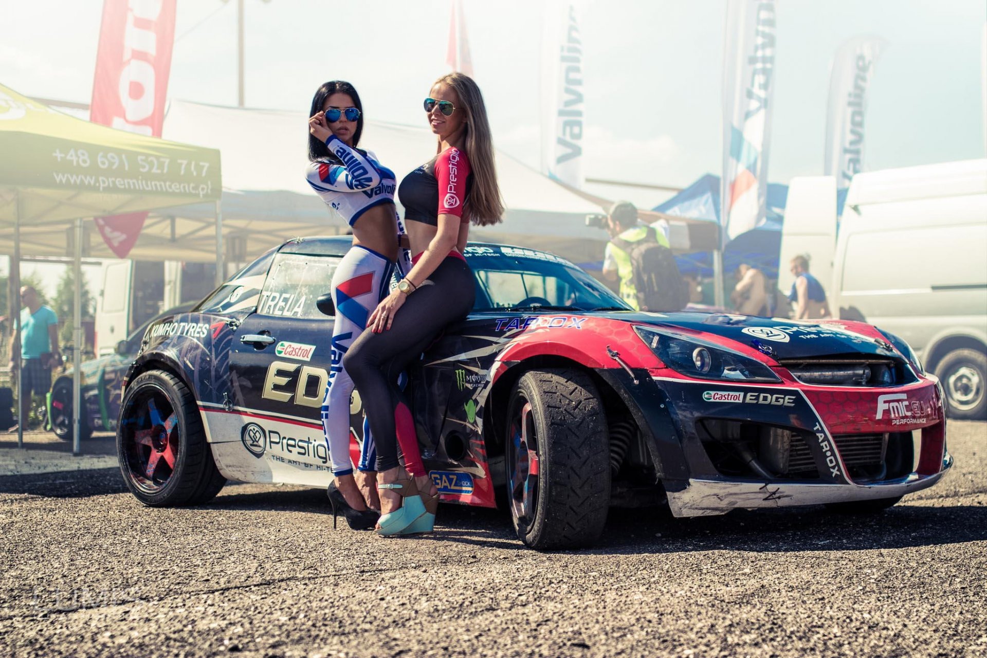 Dos chicas-hadas recogen polen de una flor y se ríenDos chicas-hadas recogen polen de una flor y se ríen