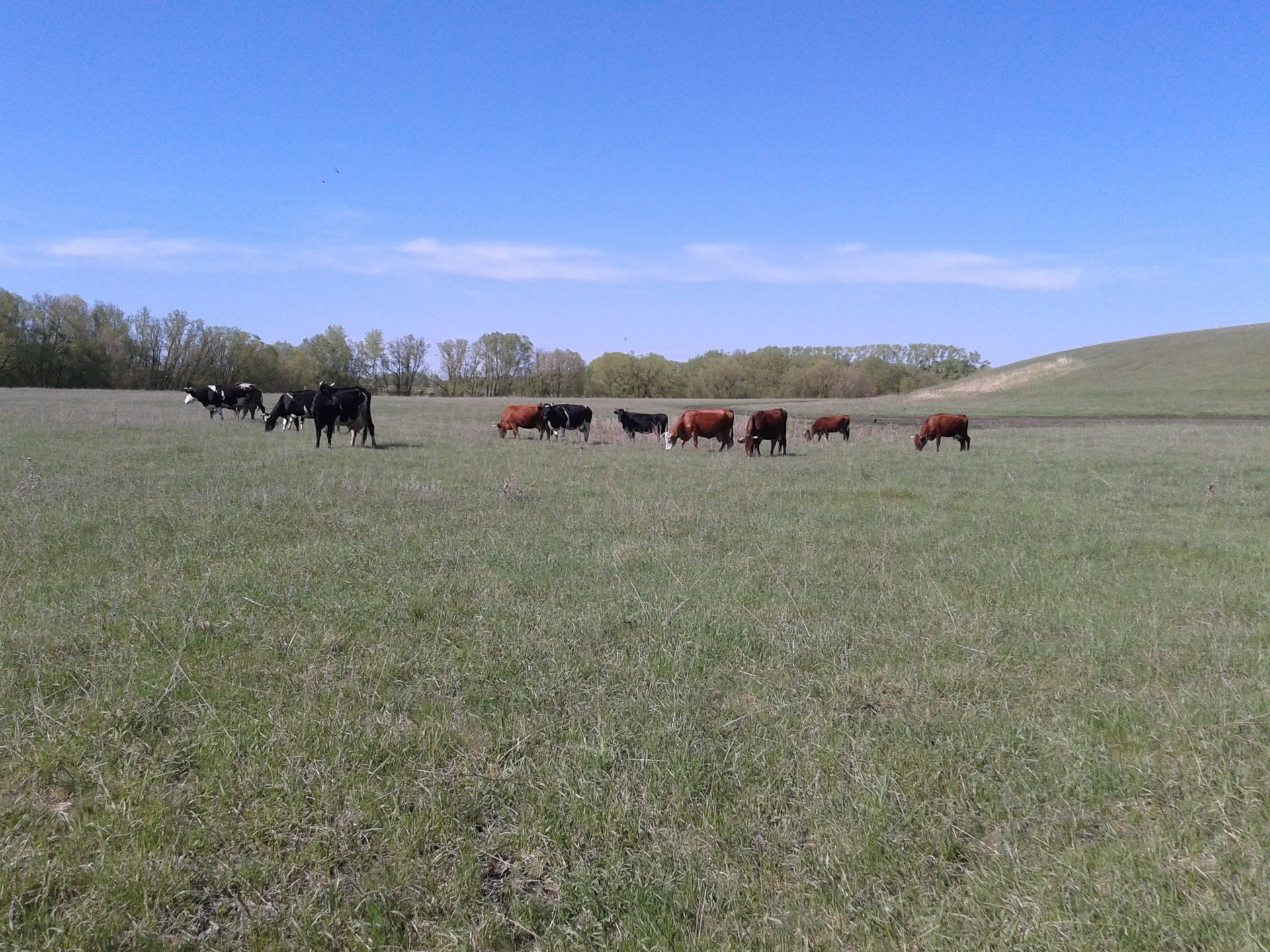 Campo verde con vacas pastando