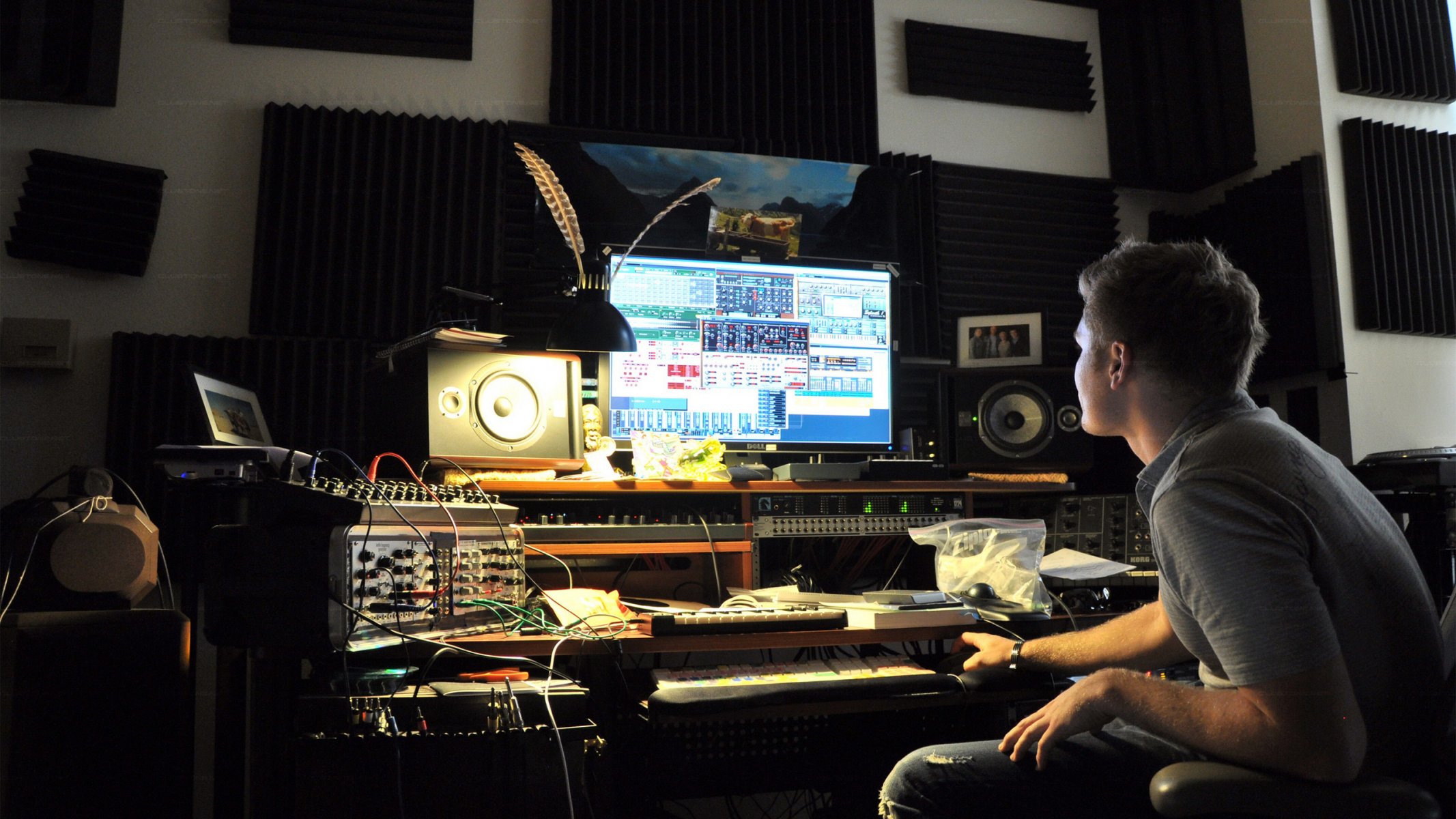 El tipo trabaja en una computadora con el monitor encendidoEl tipo trabaja en una computadora con el Monitor encendido