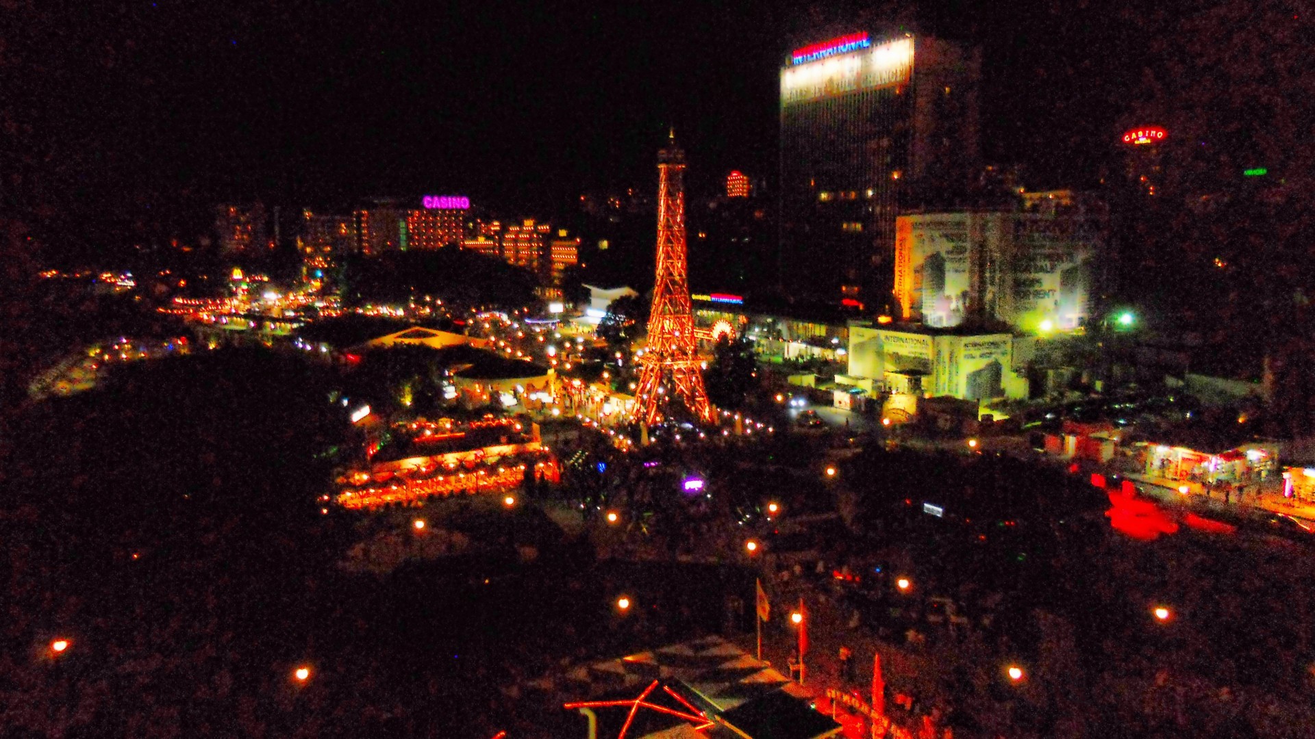 Carretera de montaña nocturna iluminada por linternas de luz naranjaCarretera de montaña nocturna iluminada por linternas de luz naranja