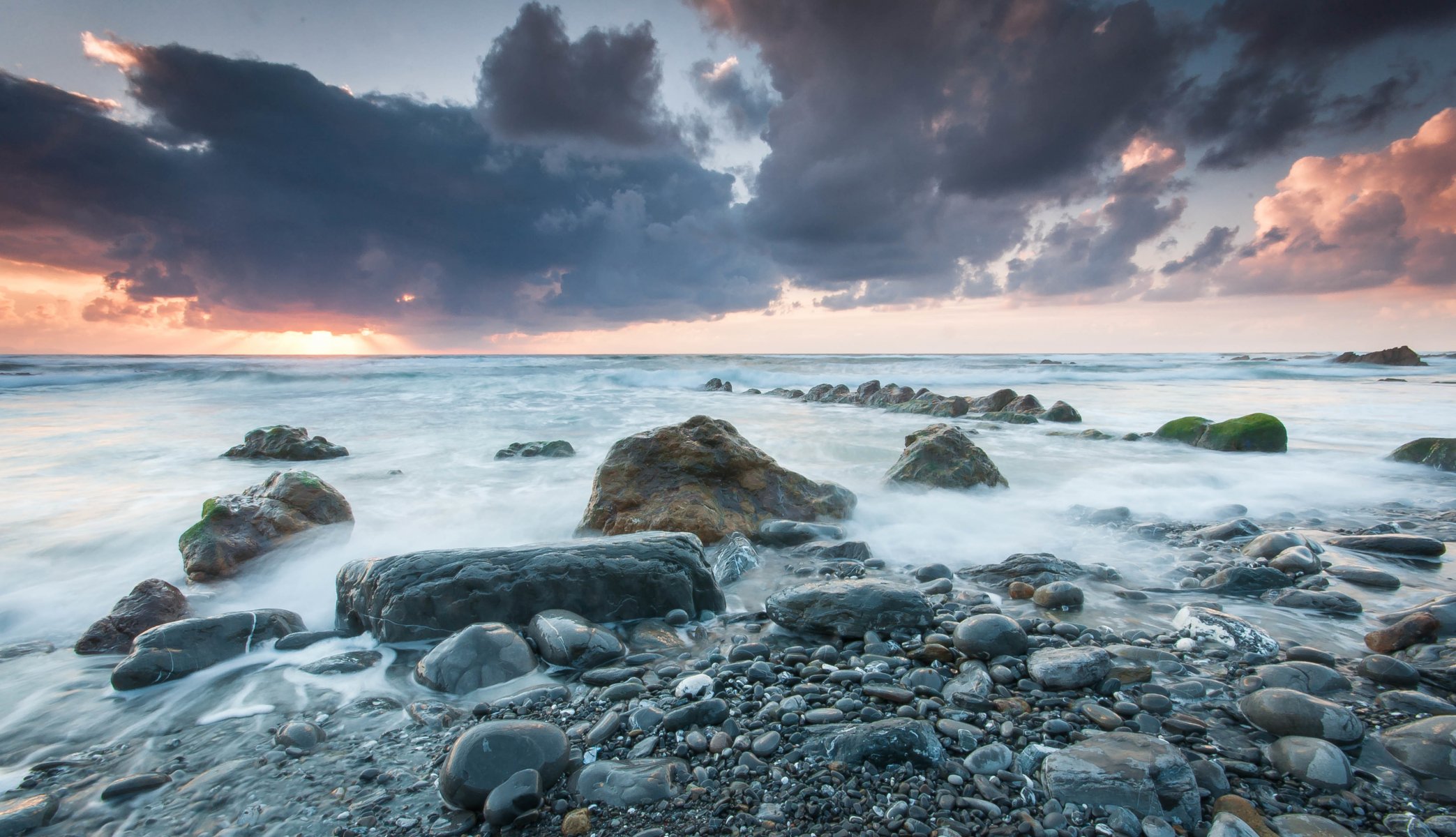 Nubes sobre la tierra iluminadas por el sol, vista desde un aviónNubes sobre la tierra iluminadas por el sol, vista desde un avión