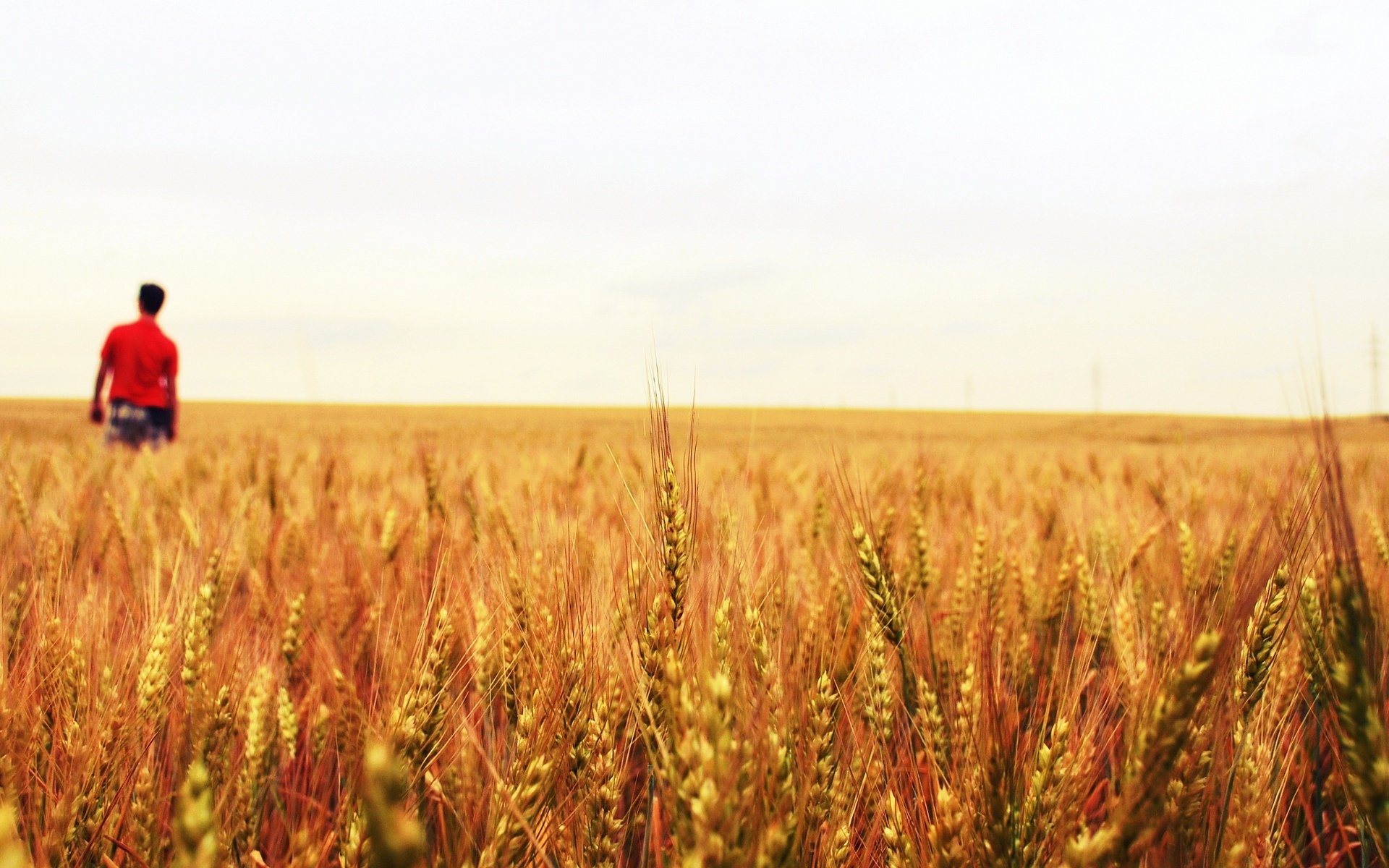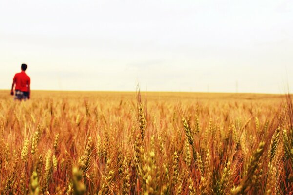 Hombre de rojo va al campo