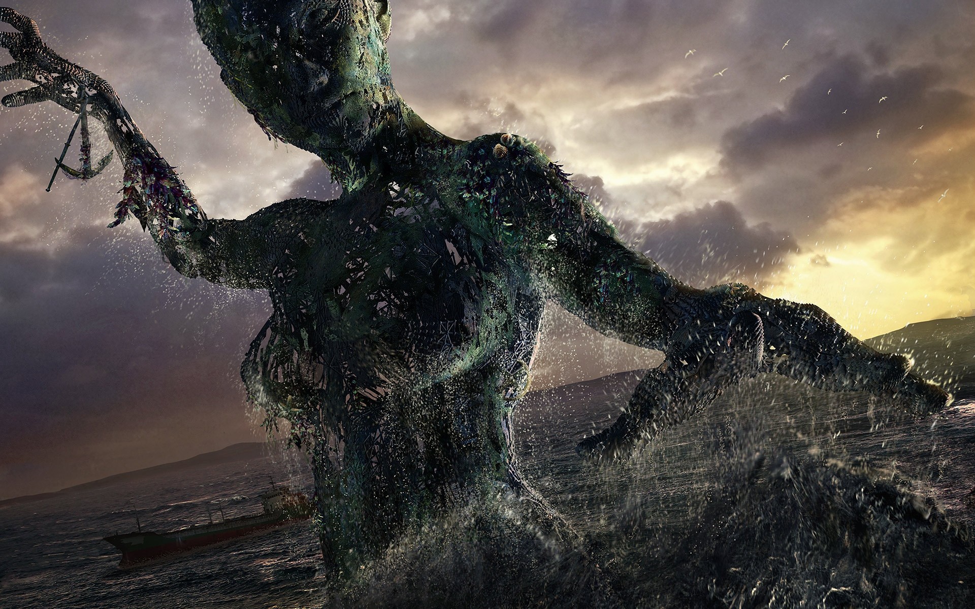El rostro femenino de la nave está cubierto de algasEl rostro femenino de la nave está cubierto de algas