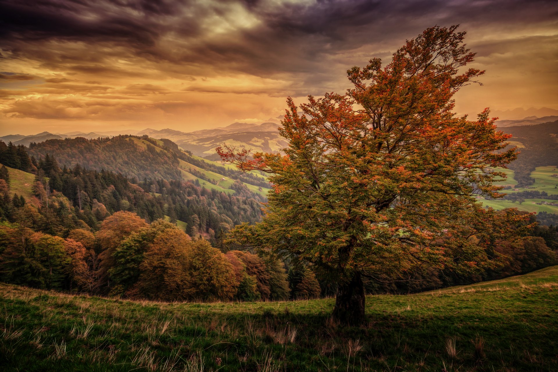 Paisaje de montaña naranja brillante