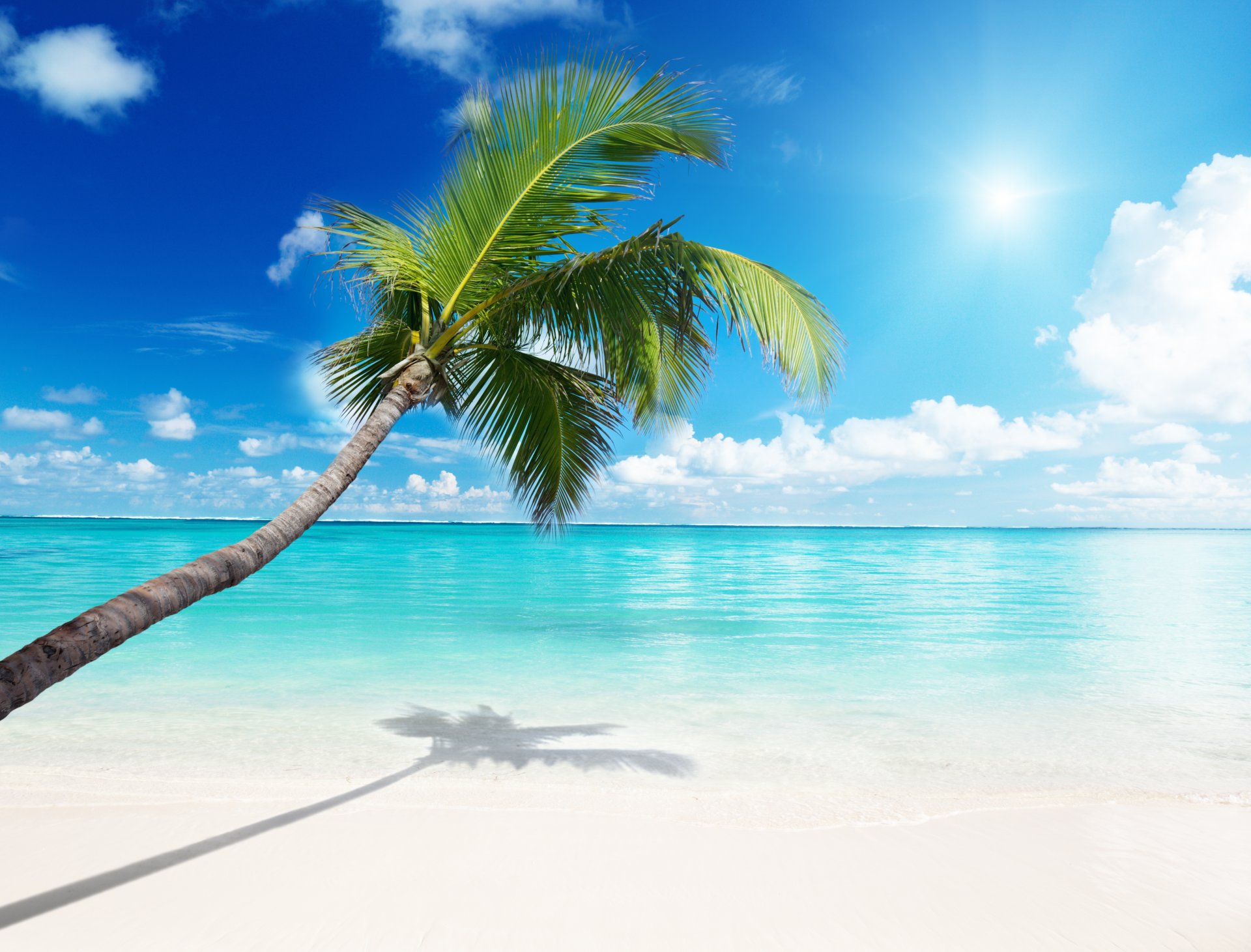 Yate en una pequeña isla con una palmera, vista desde arribaYate en una pequeña isla con una palmera, vista desde arriba