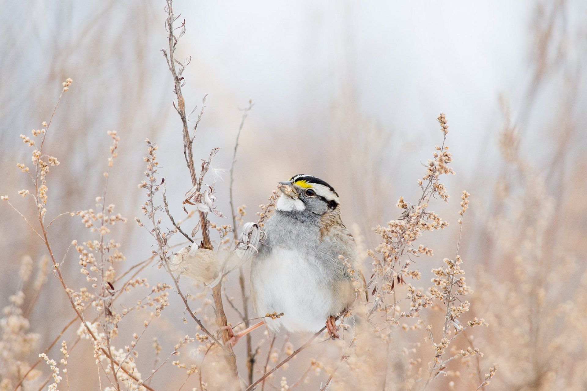 Un claro de dientes de león se encuentra con los rayos del sol desde detrás de los densos pinosUn claro de dientes de León se encuentra con los rayos del sol desde detrás de los densos pinos