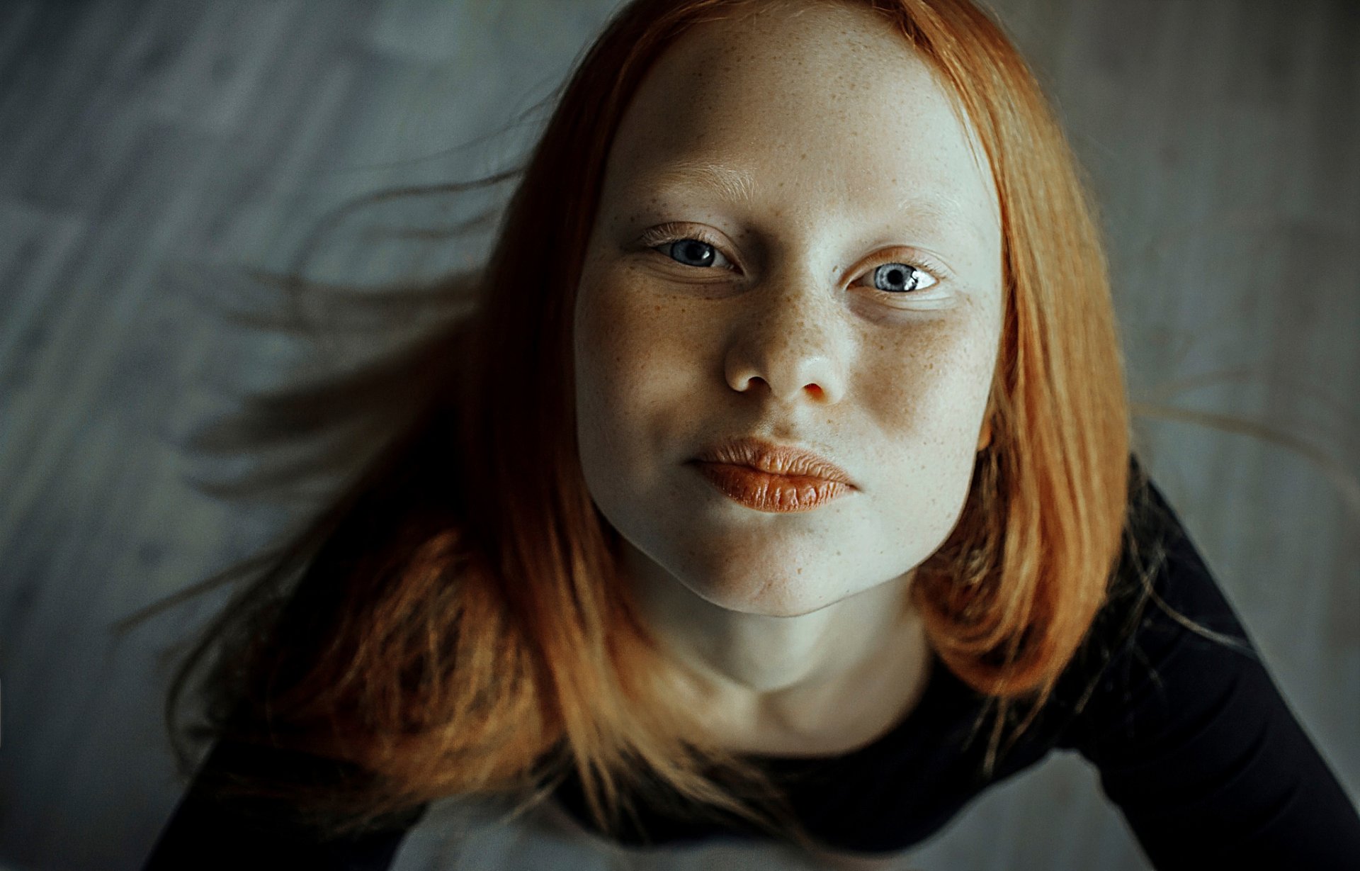 Pelirroja chica Paulina con pecas