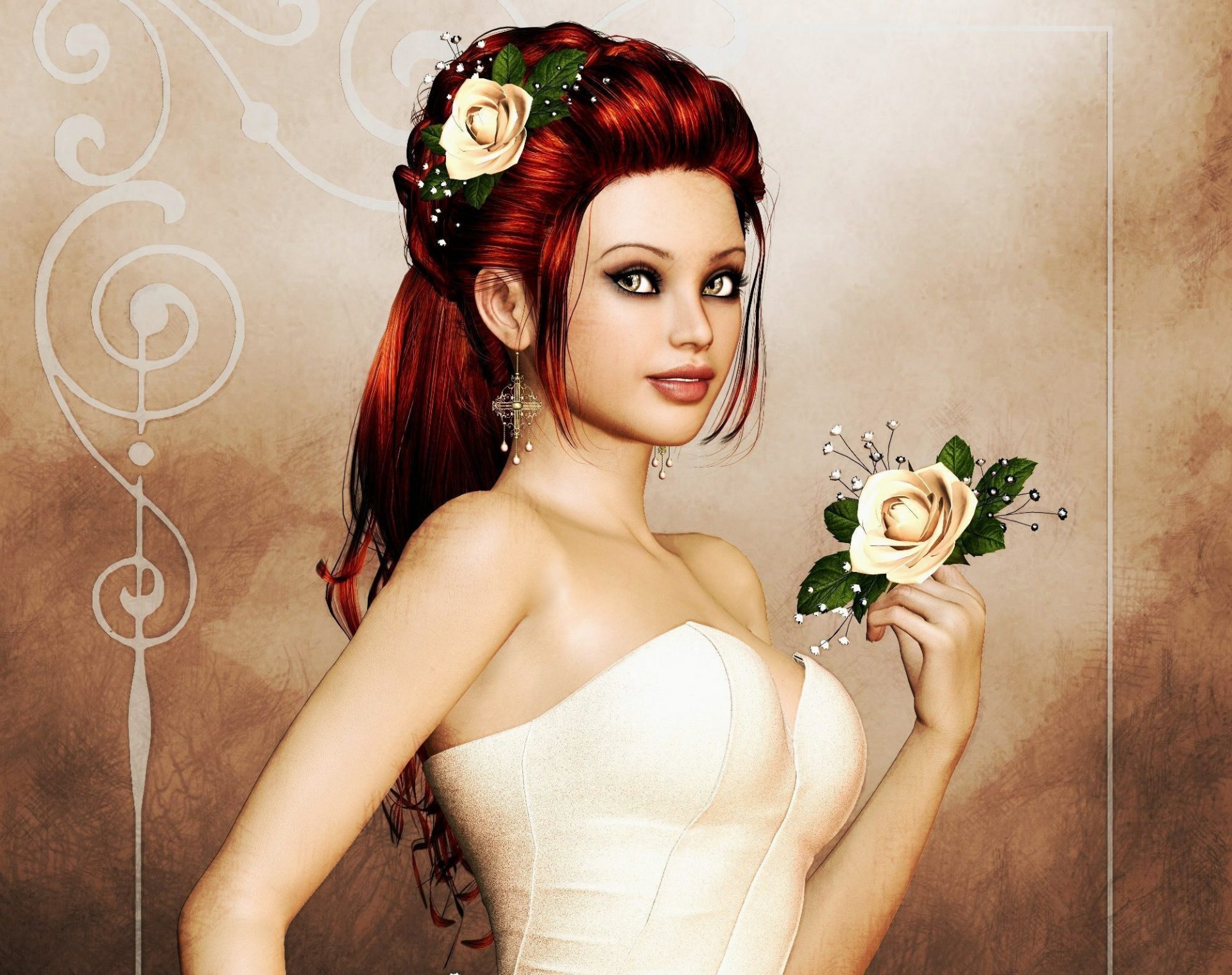 Morena con la boca abierta posando en el fondo de la naturalezaMorena con la boca abierta posando en el fondo de la naturaleza
