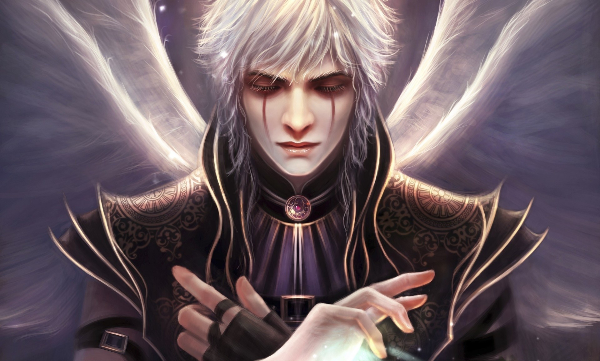 Mago del arte con cicatrices de pelo blanco en los ojosMago del arte con cicatrices de pelo blanco en los ojos