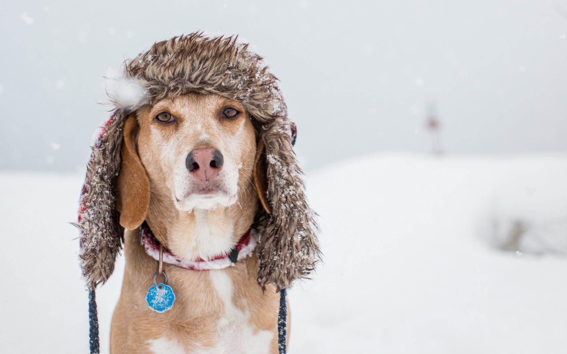 El perro de pelo corto decidió calentar la cabeza con un sombreroEl perro de pelo corto decidió calentar la cabeza con un sombrero