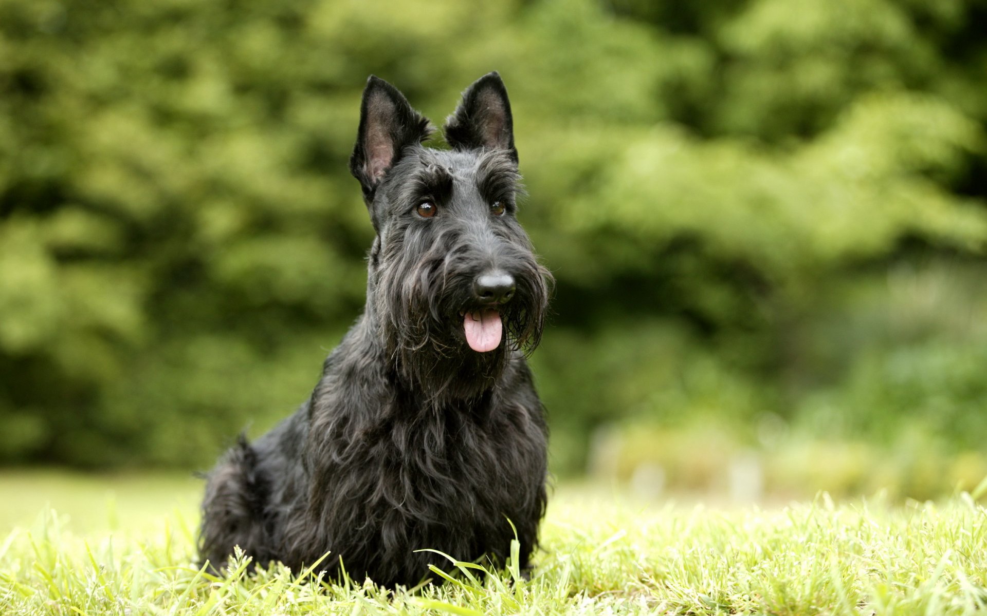Perro en el fondo del bosque verde