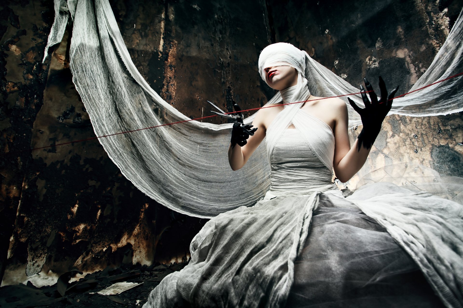 Fotografía en blanco y negro de la niña. Una mirada misteriosa