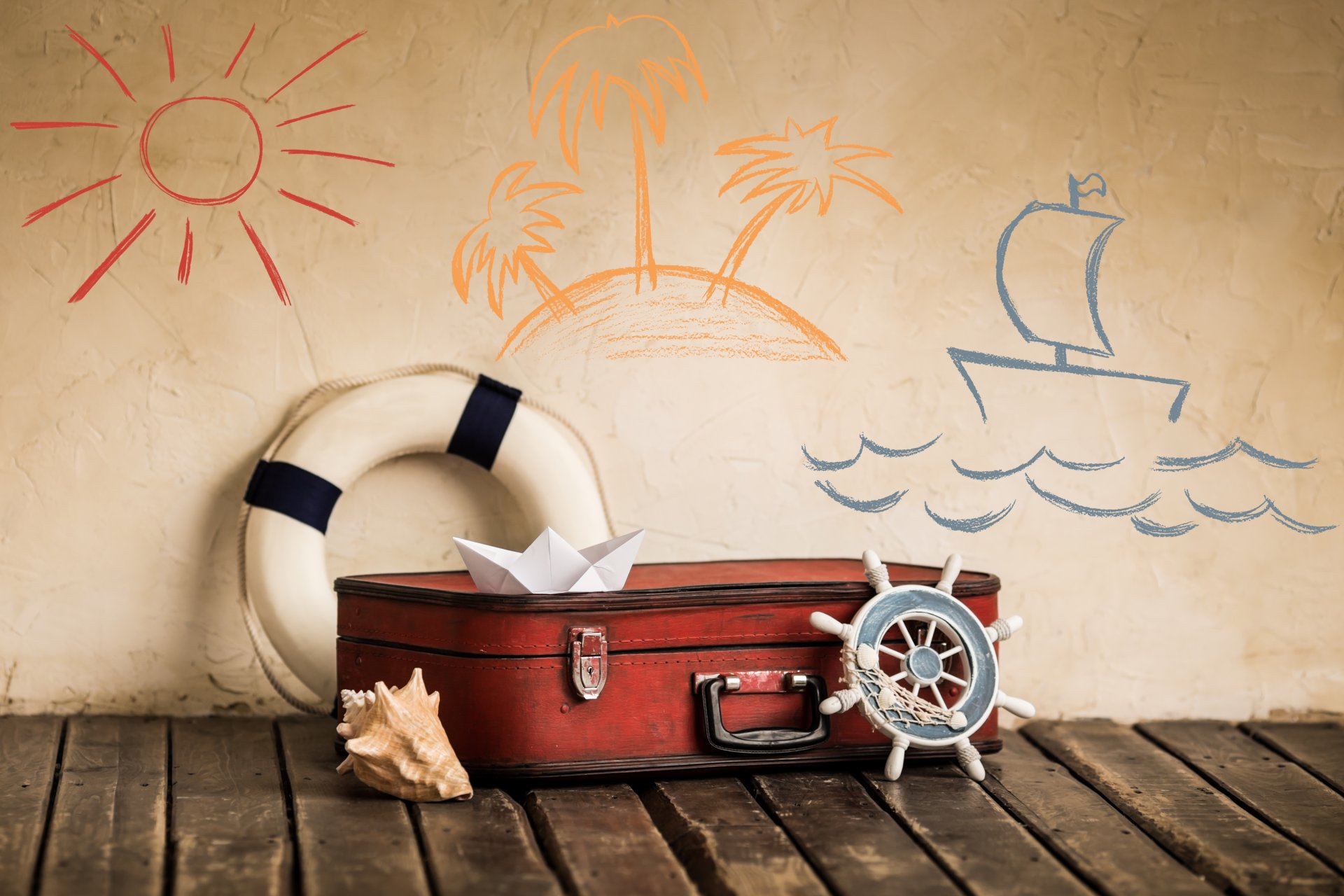 Foto dibujo maleta con patrón en la pared