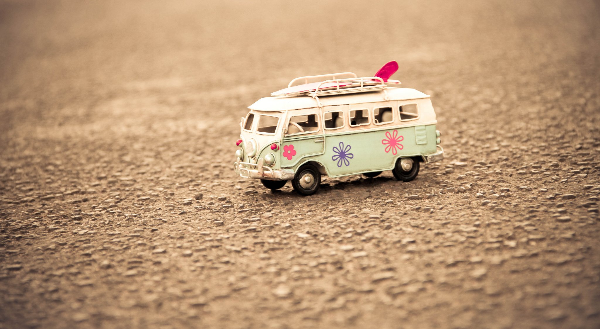 Autobús de juguete al atardecer