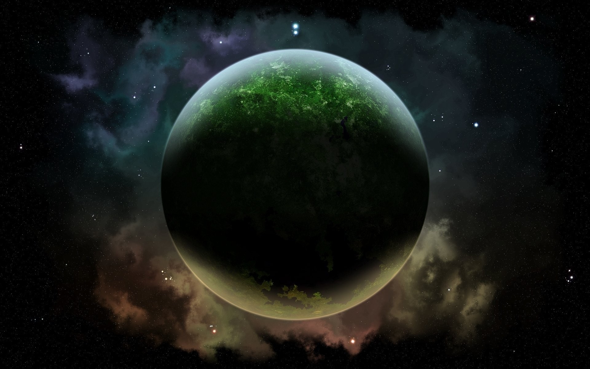 Imagen nocturna de un planeta en el espacio