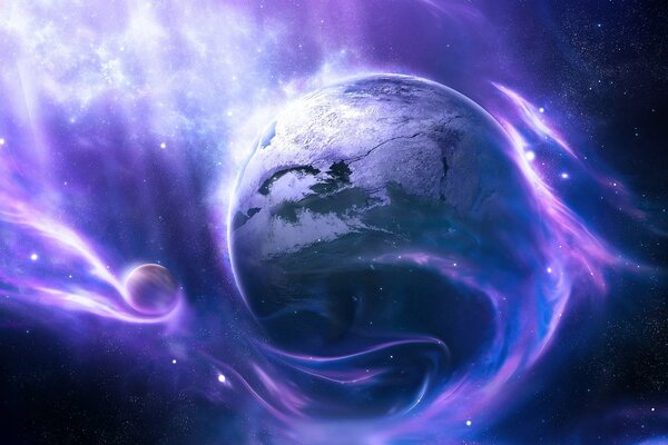 Cosmos. Gran planeta. Vista de la puesta de sol