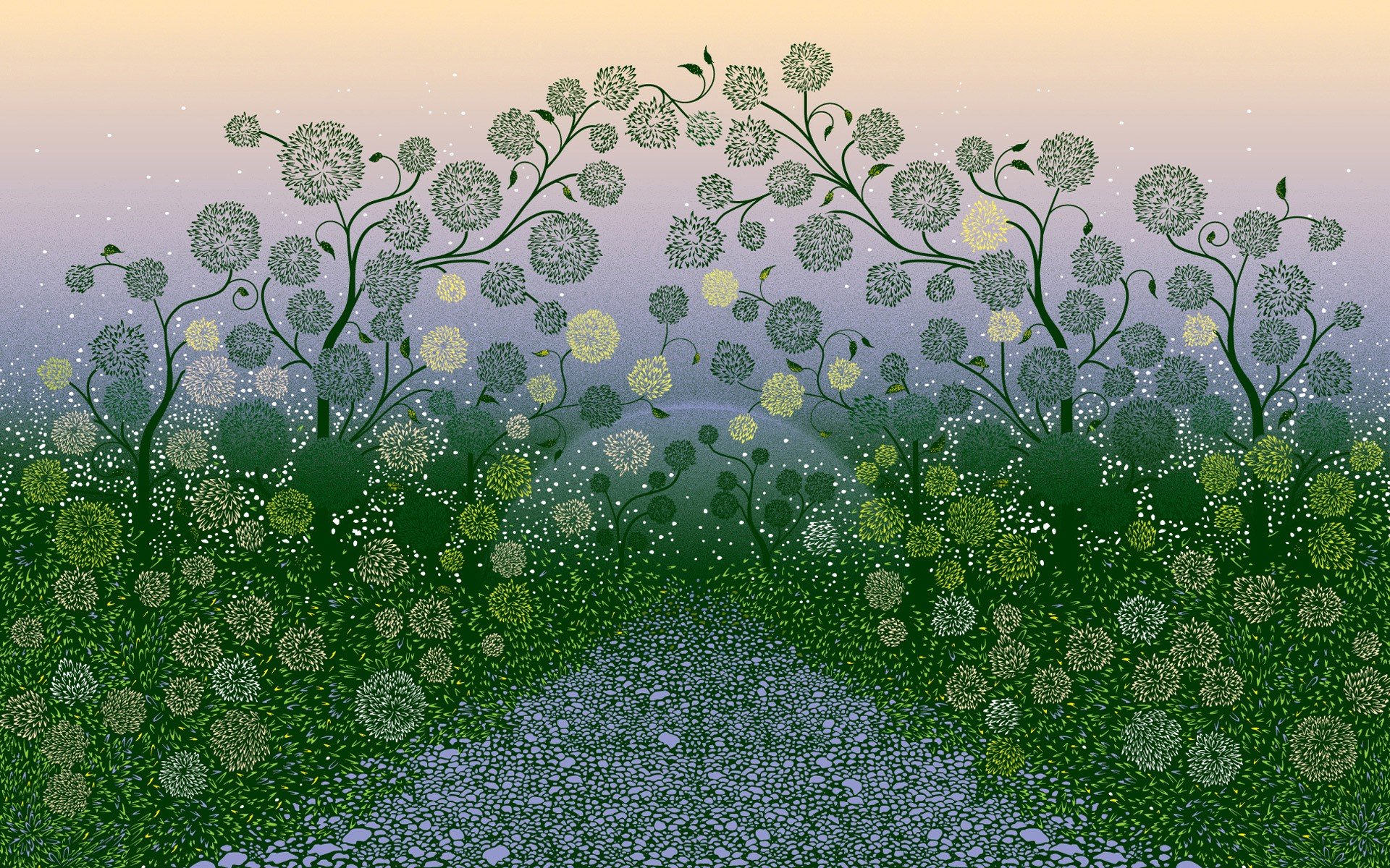Papeles pintados. flores de gerbera sobre fondo verdePapeles pintados. Flores de gerbera sobre fondo verde