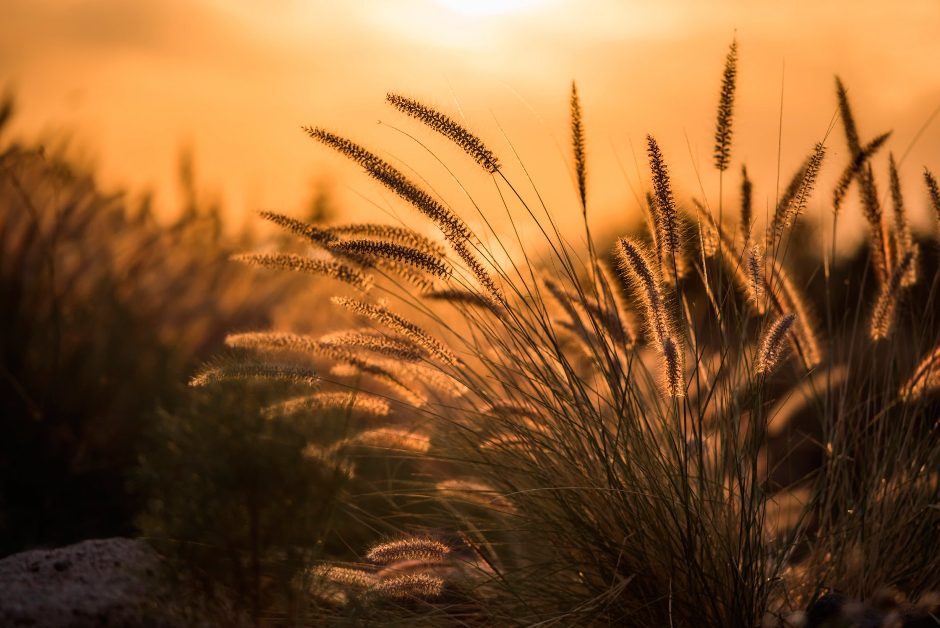 Un coche rojo cabalga sobre un puente con hierba y plantas