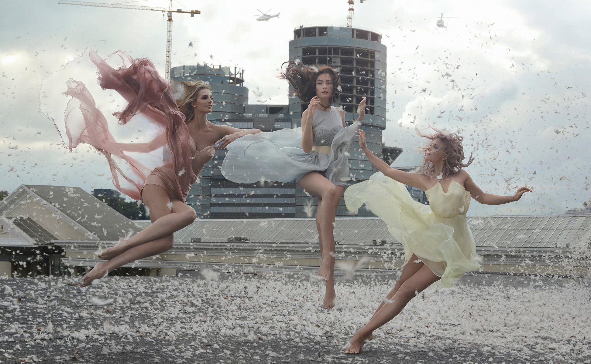 Retrato de la cantante ani lorak con un colorido vestido contra el cieloRetrato de la cantante ANI Lorak con un colorido vestido contra el cielo