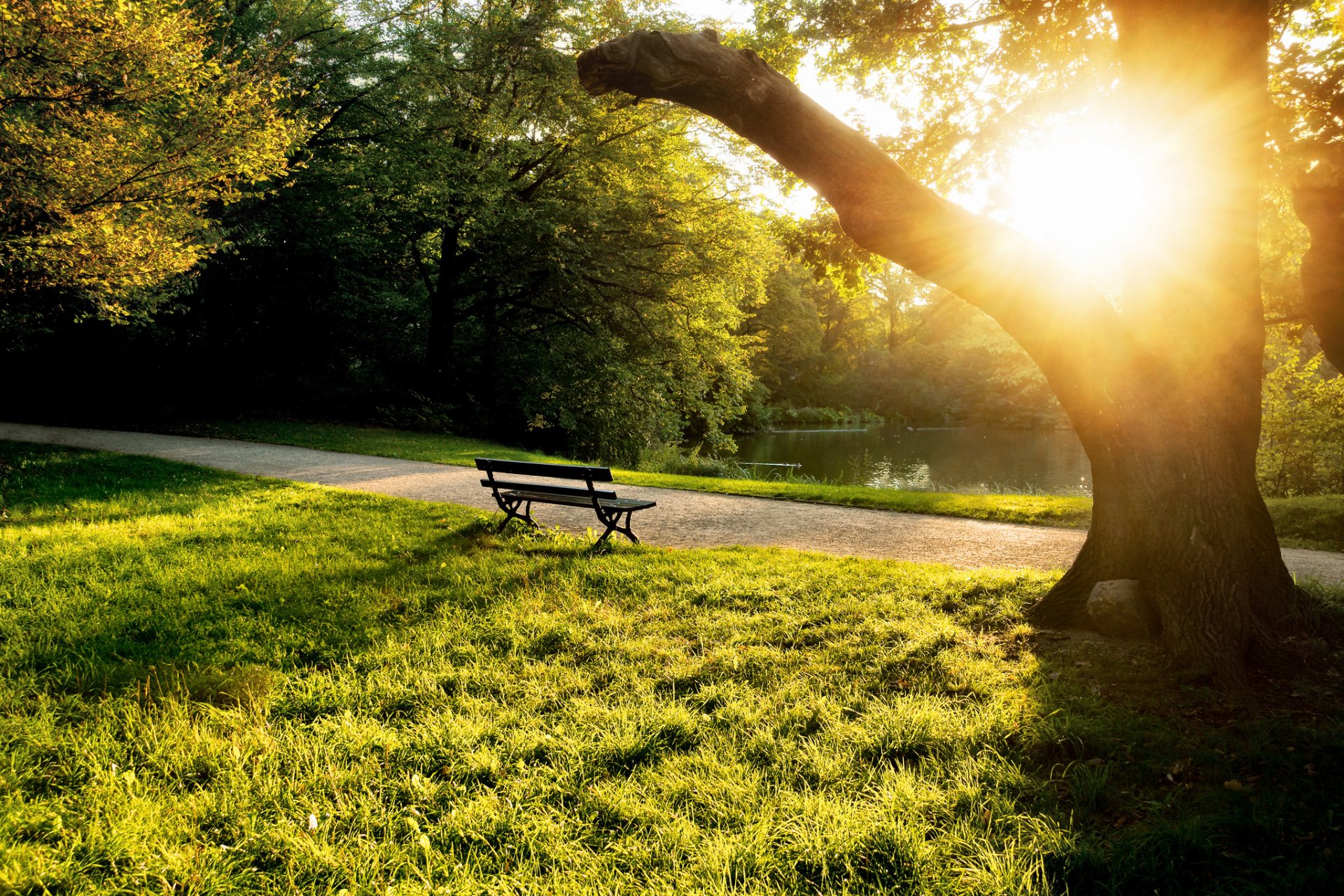 Banco junto al estanque. Día de verano