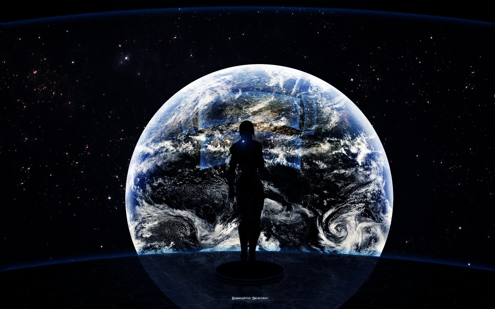 Un hombre mira por la ventana de una nave a un planeta en el espacioUn hombre Mira por la ventana de una nave a un planeta en el espacio
