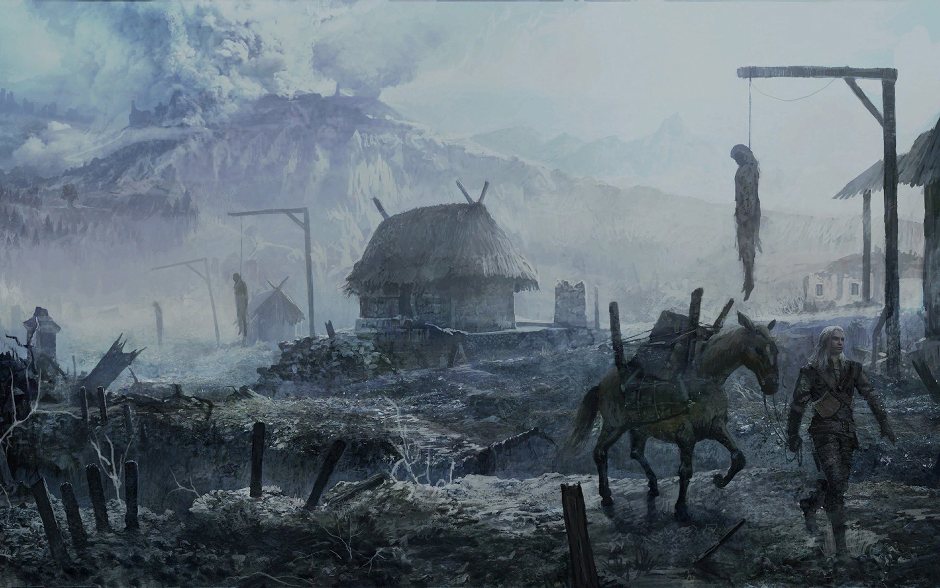 El brujo. masacre en el pueblo. Heraldo. Arte
