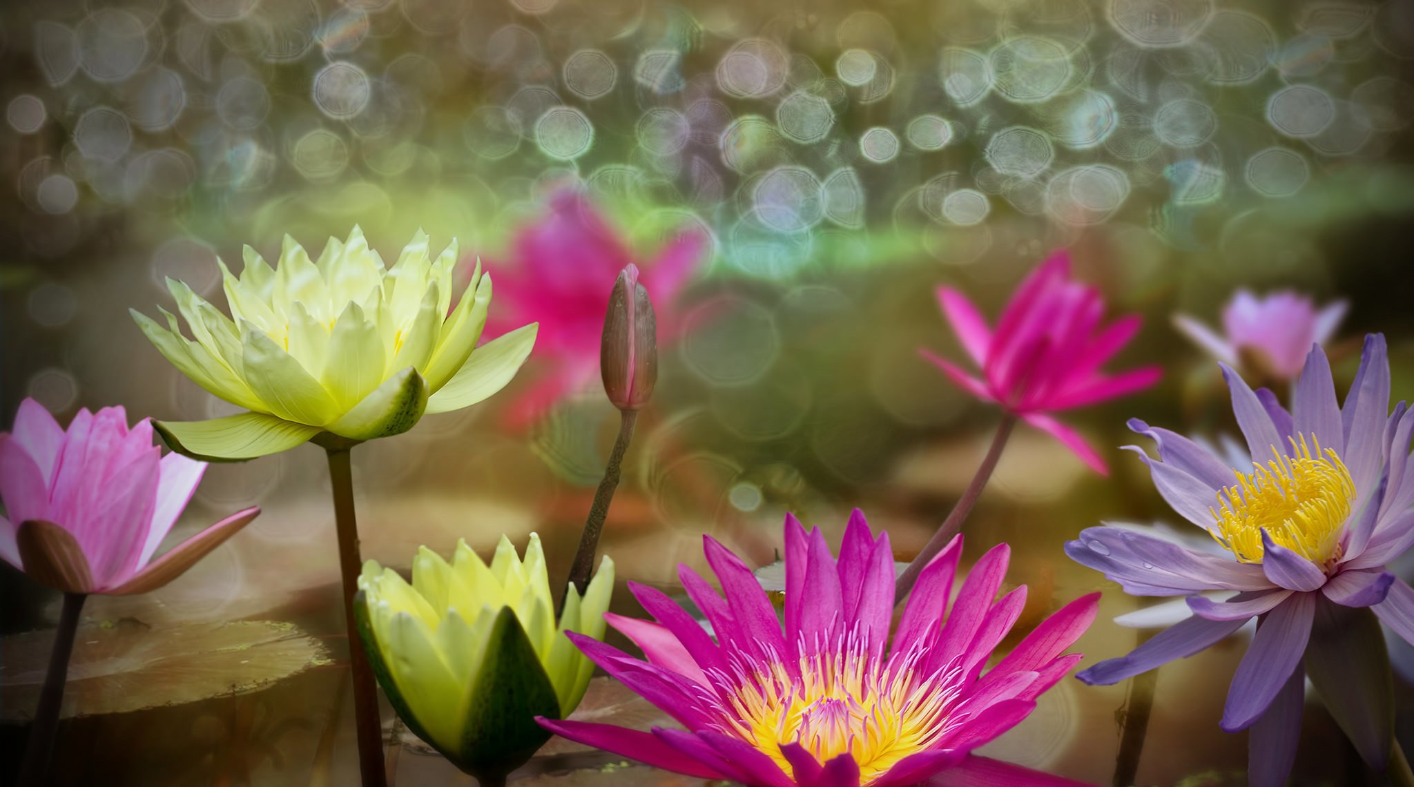 Un montón de burbujas de colores en el fondo de la vegetaciónUn montón de burbujas de colores en el fondo de la vegetación