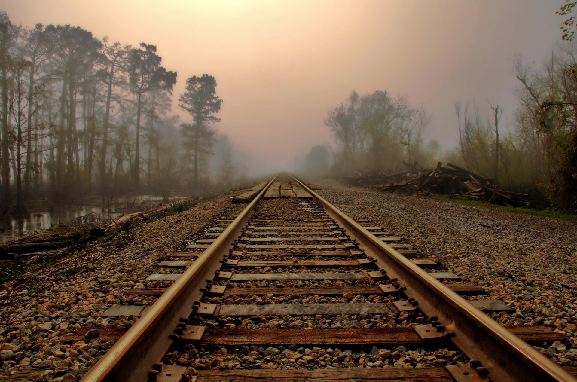 Túnel de arbustos verdes vivos con rieles que corren sobre él