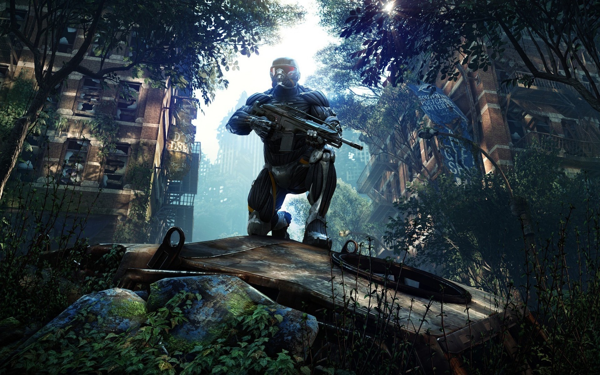 Guerrero informático con uniforme y máscara de gasGuerrero informático con uniforme y máscara de gas