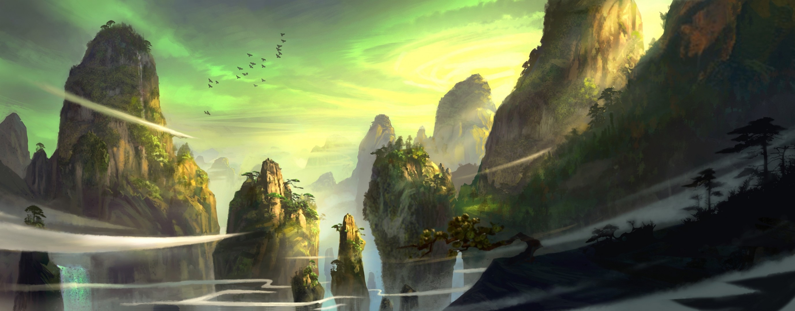 Art rong rong rongjong wang templo en las rocas en la altura, alrededor de las aves vuelanArt Rong Rong rongjong Wang templo en las rocas en la altura, alrededor de las aves vuelan