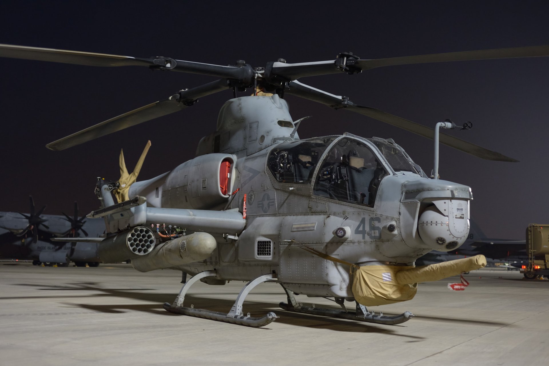 Helicóptero de ataque víbora de pie en el campo de despegueHelicóptero de ataque víbora de pie en el campo de despegue