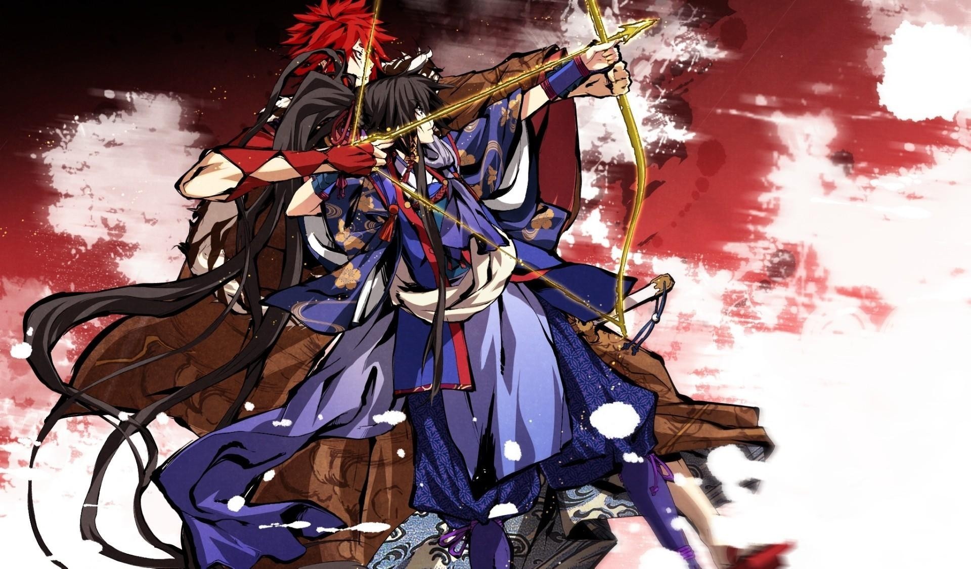 Dos chicas en ropa extraña de color rojo y púrpuraDos chicas en ropa extraña de color rojo y púrpura