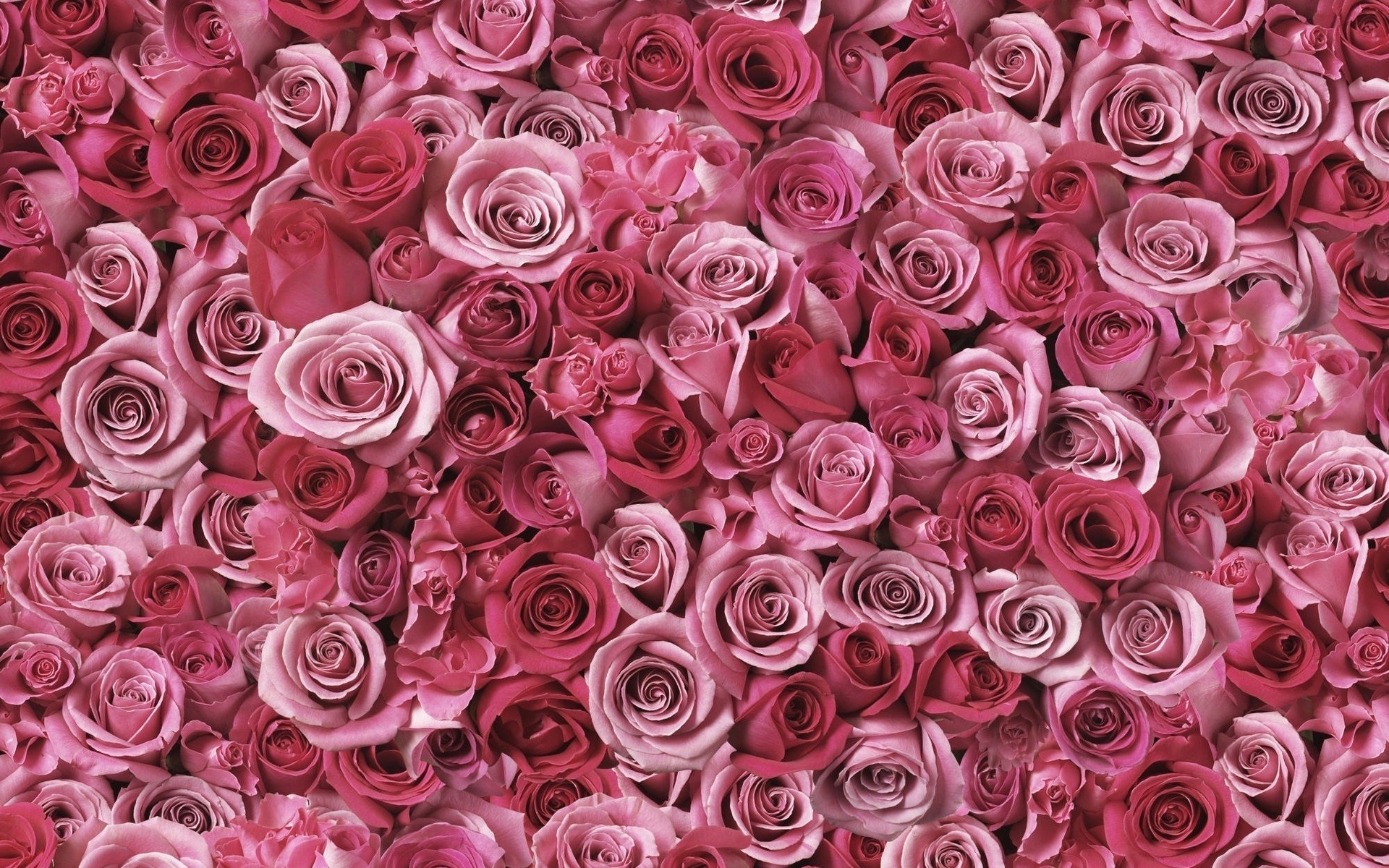 Rosas de Coral y rosa en una cesta de mimbre verde