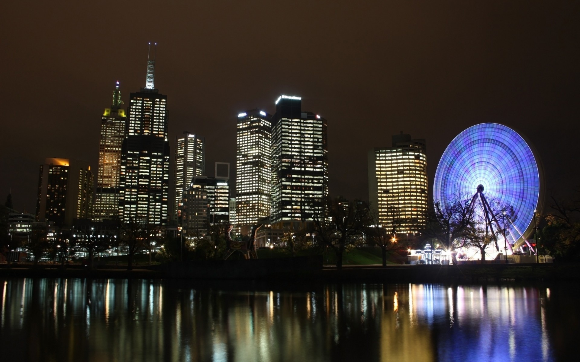 Los rascacielos de la ciudad de ee.uu. se reflejan en el agua de la nocheLos rascacielos de la ciudad de EE.UU. se reflejan en el agua de la noche