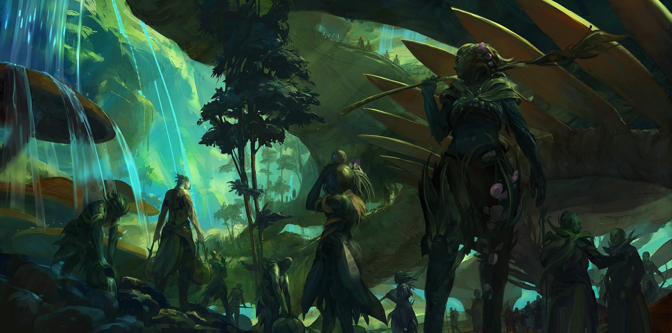 Cascada en china cerca de un puente y edificios en las montañasCascada en China cerca de un puente y edificios en las montañas