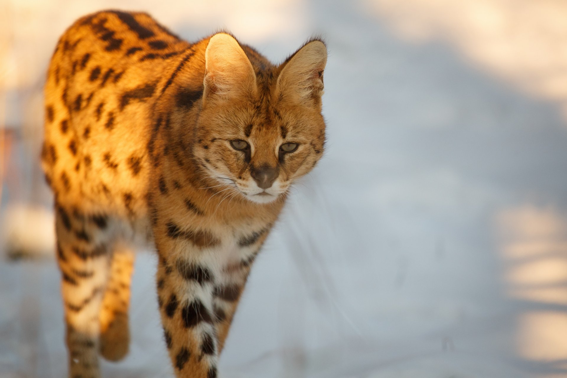 Un gato montés salvaje pasea por la nieve en inviernoUn gato montés salvaje pasea por la nieve en invierno