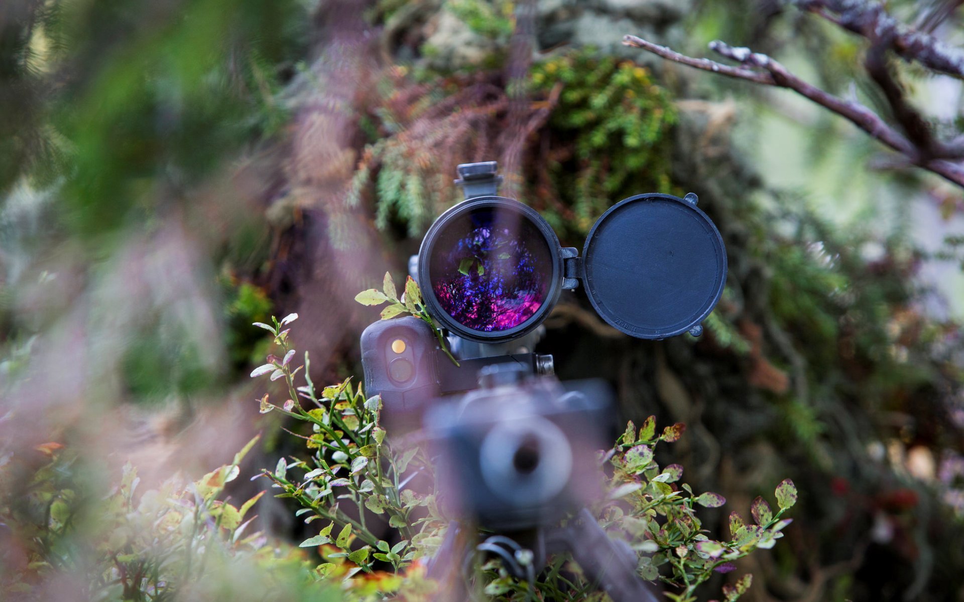Soldado con armas. Disfrazarse en el bosque