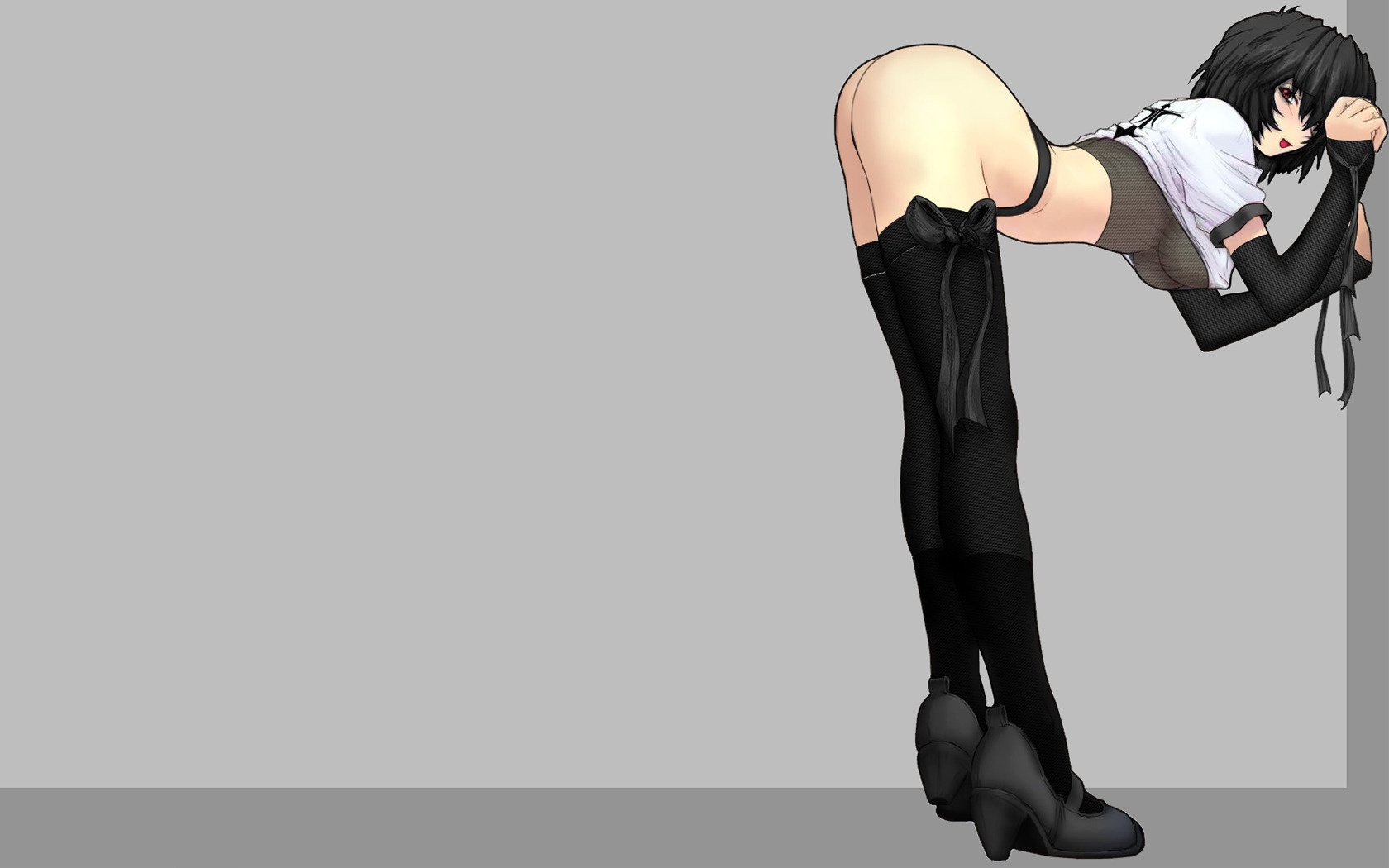 Sexy morena chica en medias y guantes