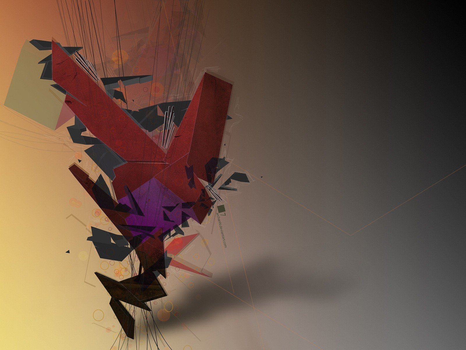 Figura abstracta de rojo púrpura y gris sobre fondo gris amarillo