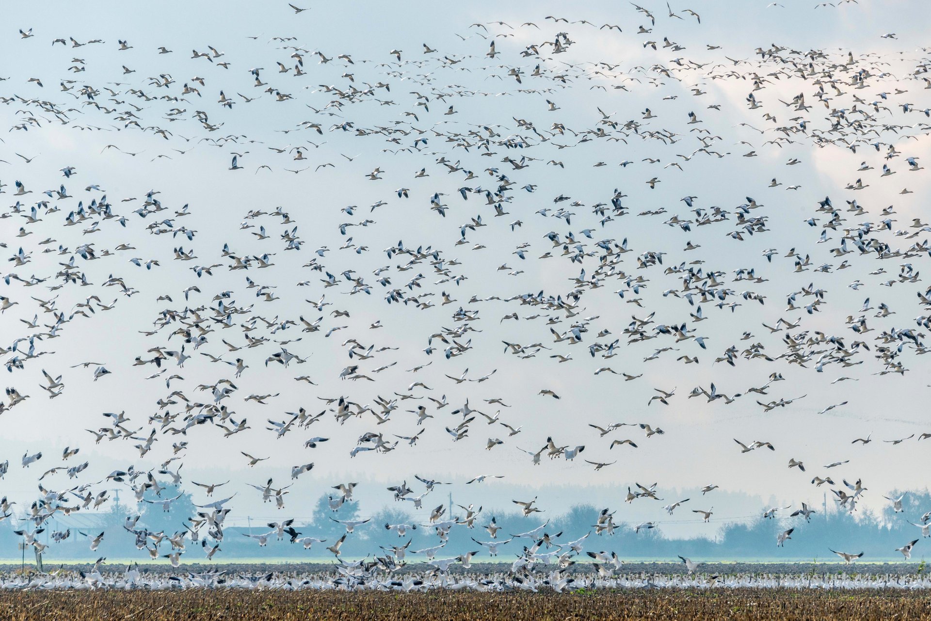 Una bandada de aves marinas llenó todo el espacio sobre el agua