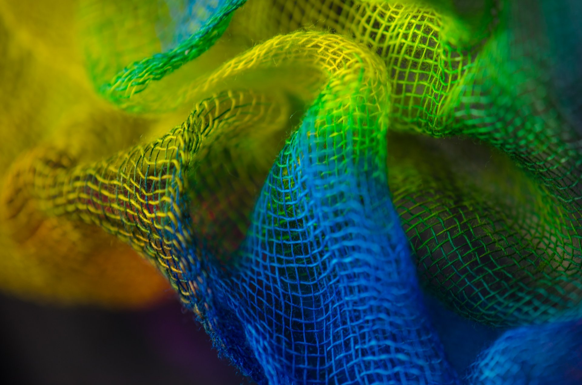 Fondo de tela-copos de nieve azules intercalados con rojos y amarillosFondo de tela-copos de nieve azules intercalados con rojos y amarillos