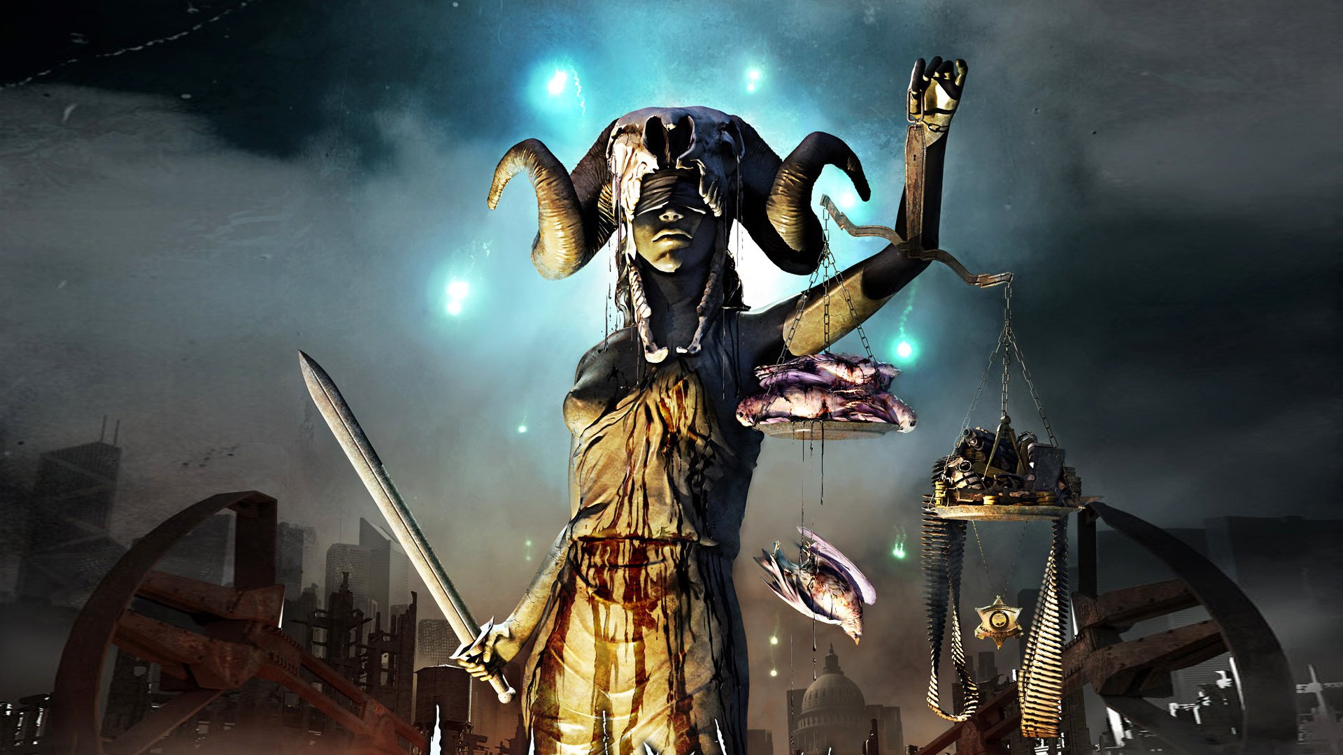 Temible themis con cuernos en el fondo del resplandorTemible Themis con cuernos en el fondo del resplandor