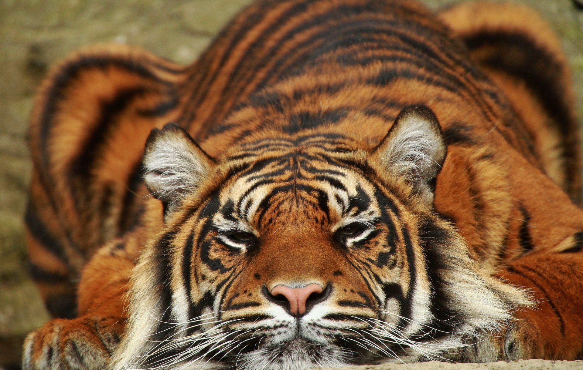 Un Tigre tranquilo descansa sobre una piedra