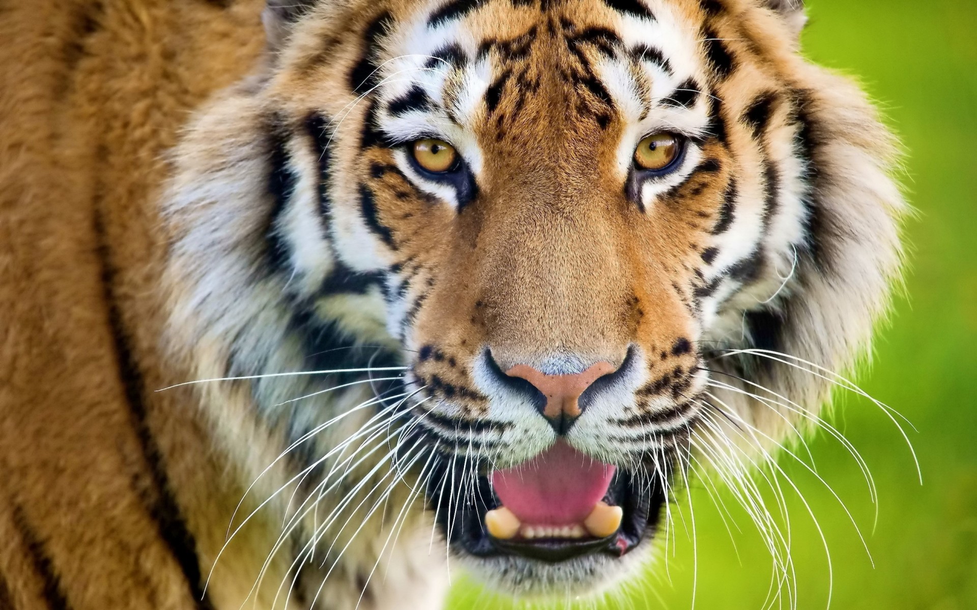 El tigre de Amur bosteza, la boca con los colmillos de cerca